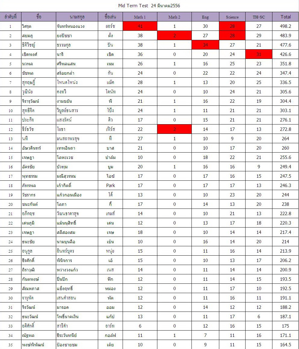 คะแนนทดสอบกลางคอร์ส มี.ค. 56