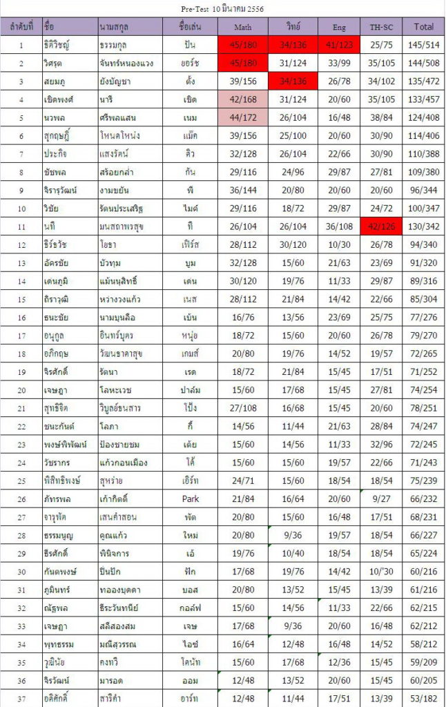 คะแนนทดสอบก่อนเรียนคอร์ส มี.ค. 56